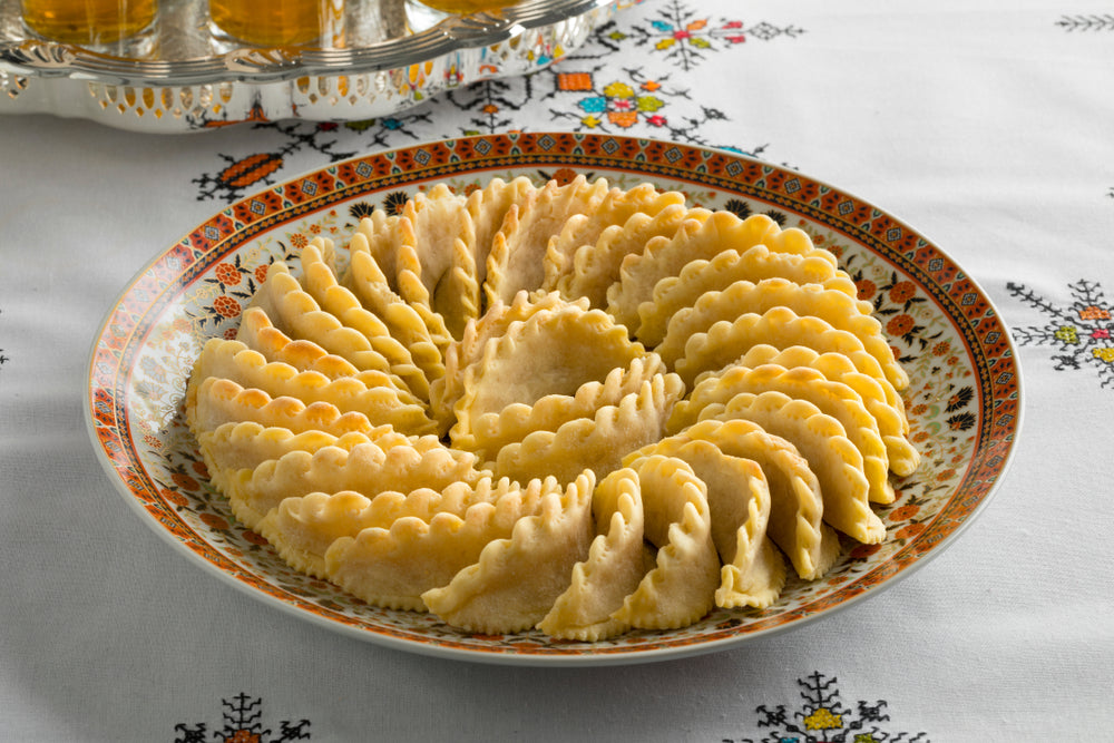 Pastas marroquíes en forma de media luna, rellenas de almendra dulce